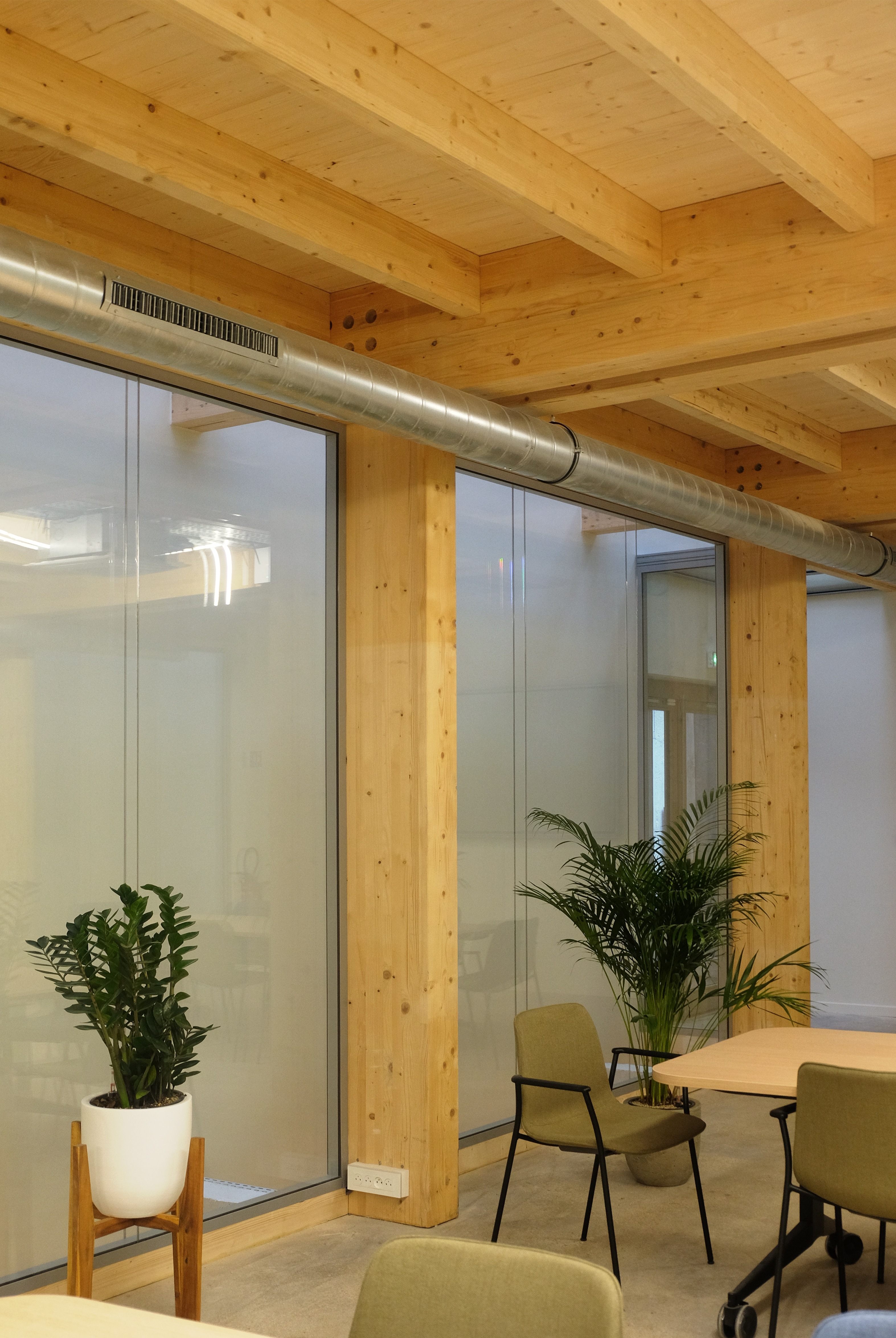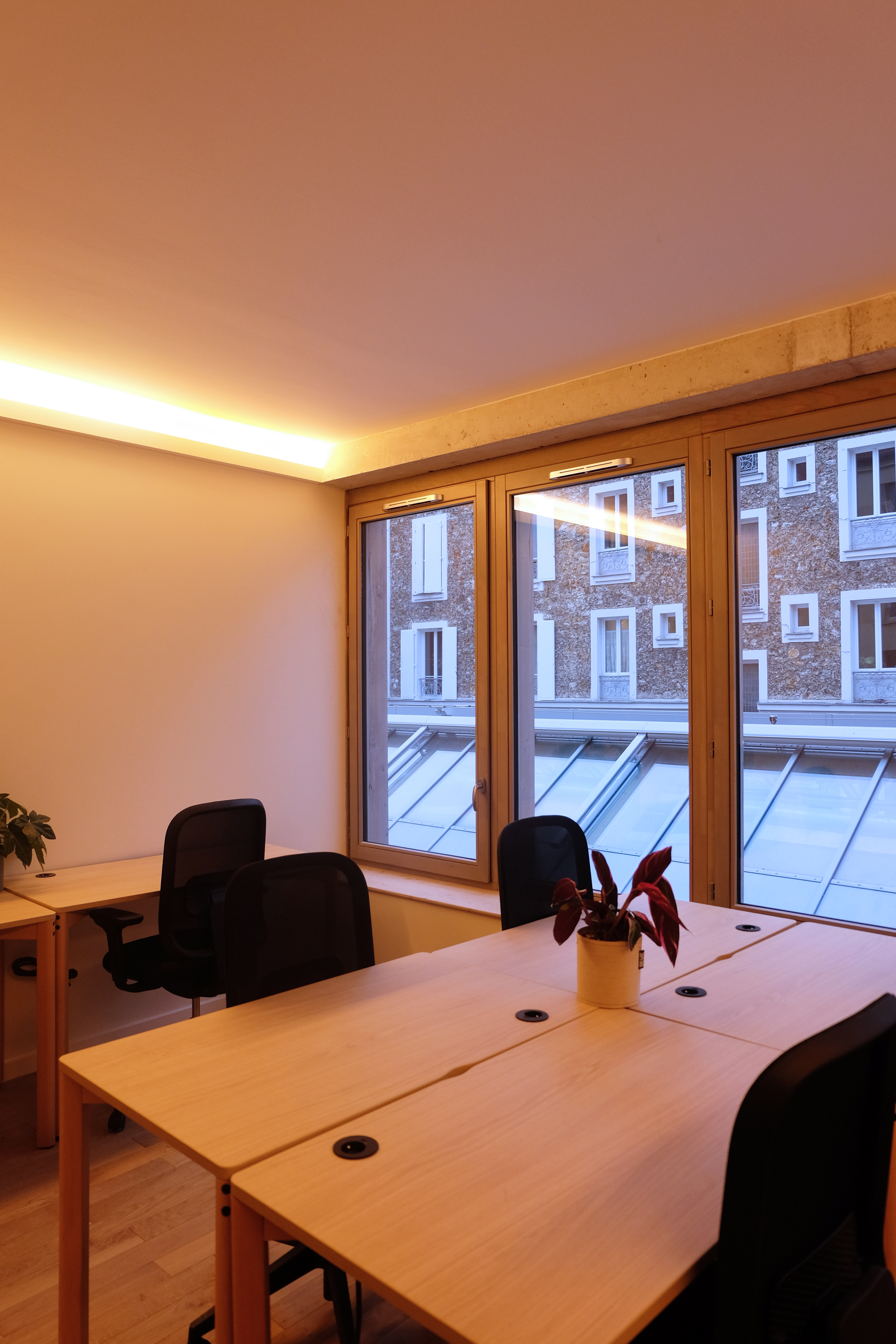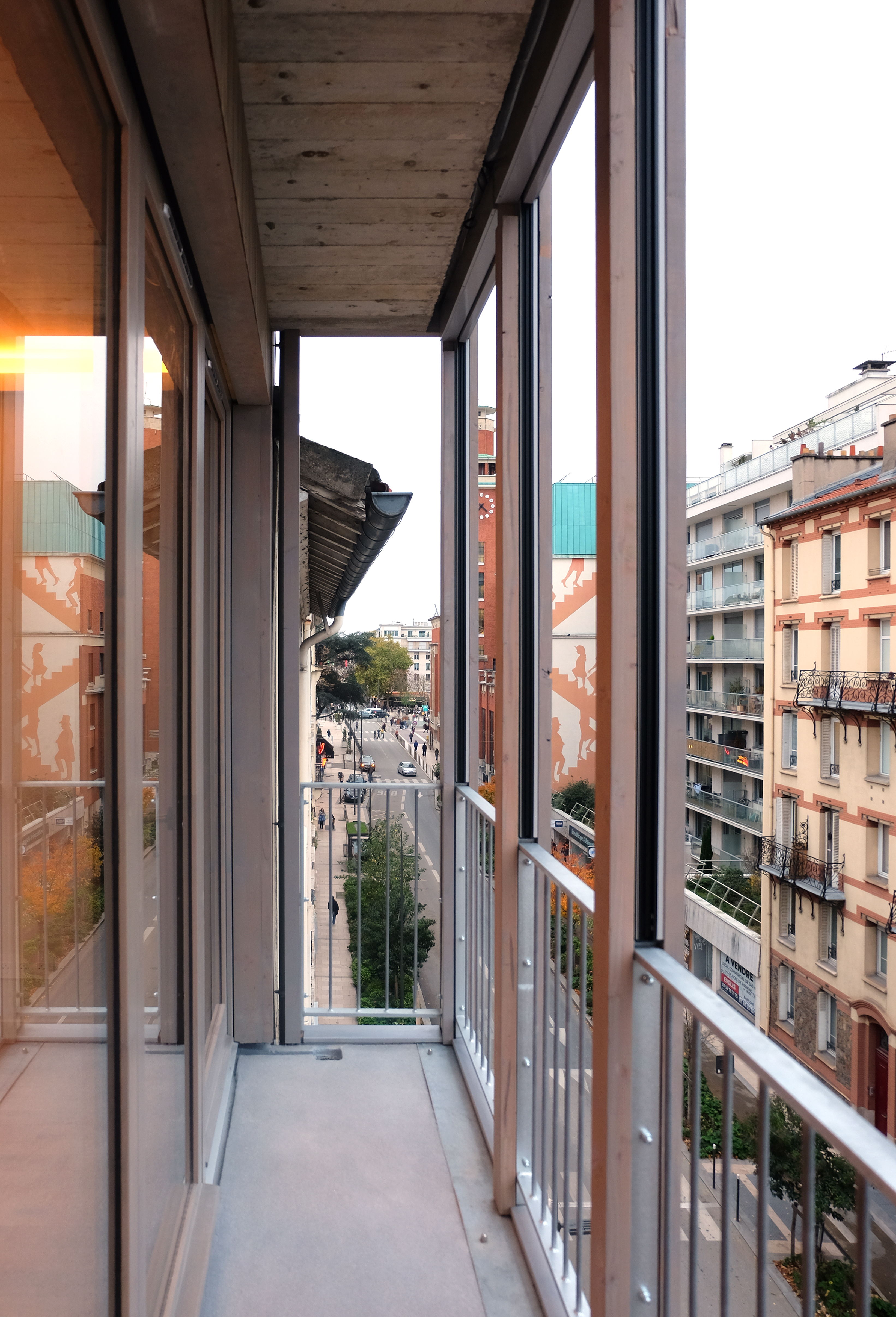 Implanté sur une parcelle en « L » contrainte par sa faible largeur sur rue et ses faibles possibilités d’éclairement sur cour, ce projet d’immeuble de bureaux et de coworking situé à proximité de la mairie de Montrouge propose une typologie double : un petit immeuble traversant en R+5 côté rue, et une halle composée de trois niveaux superposés côté cour. Dans la halle, une large verrière associée à des trémies d’éclairement latérales permettent d’amener de la lumière jusqu’au sous-sol aménagé. Afin d’accueillir une pluralité d’occupations au fil du temps (réunions en petits comités, coworking, événementiel) le plan s’attache à préserver une certaine flexibilité. Le projet décline par ailleurs plusieurs utilisations du bois et du béton : structure béton et menuiseries bois sur rue, soubassement béton et charpente bois moisée dans la halle.